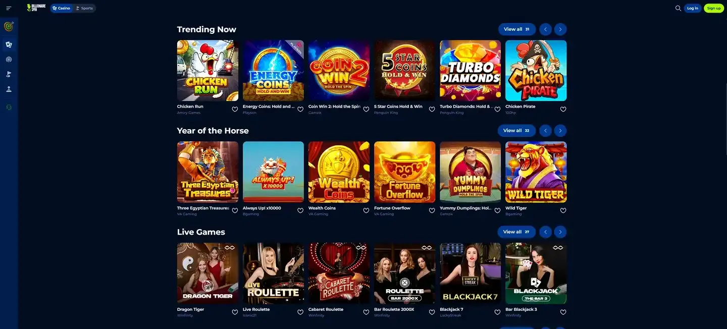 Milyen játékokat kínál a Billionaire Spin Casino?